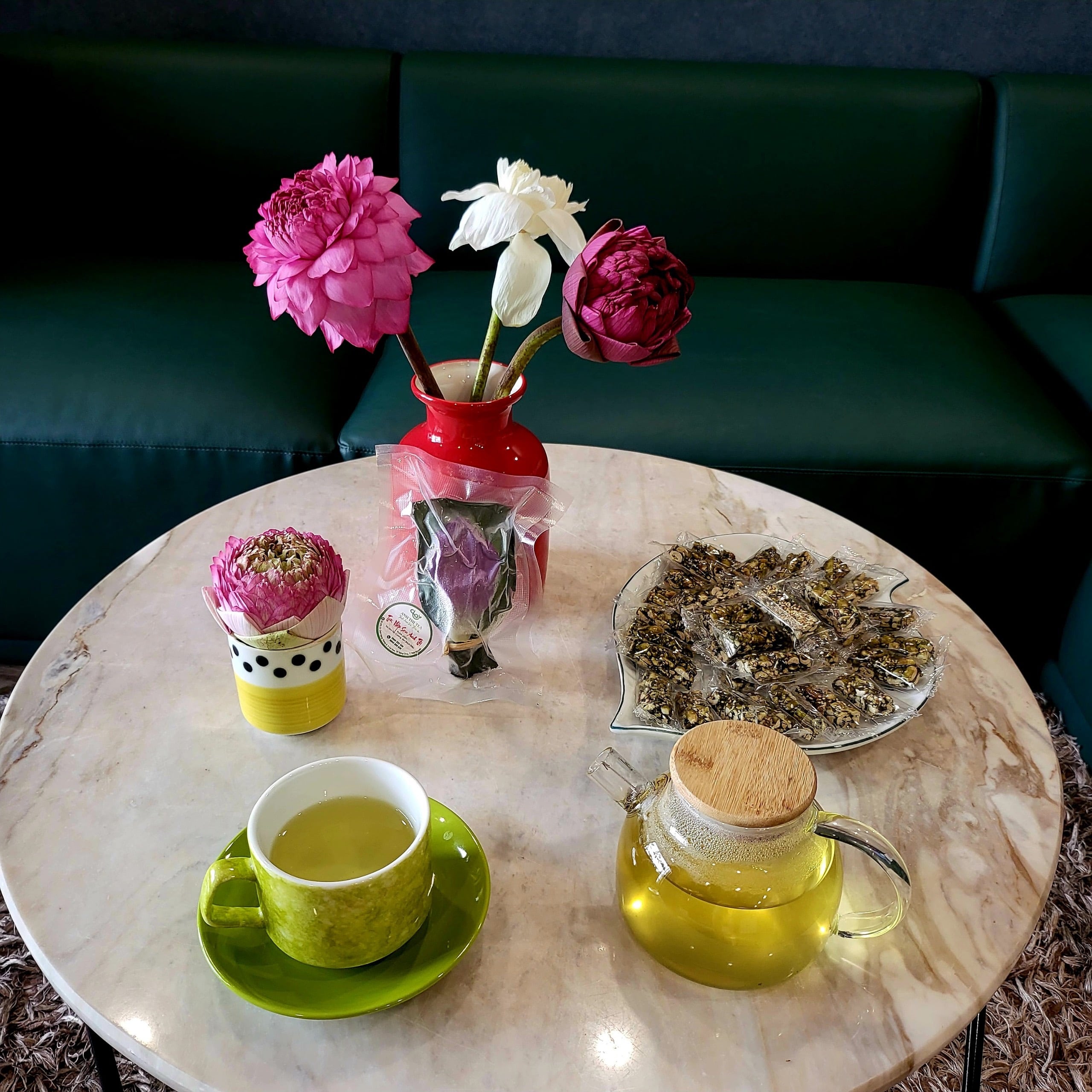 Với ý tưởng giới thiệu các sản phẩm có nguồn gốc từ chè Tân Cương đến khách hàng.Trà Anh Thị đã kết hợp thành công giữa kẹo lạc và trà xanh.